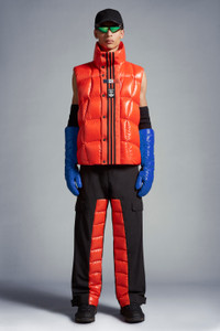 A statement warmer for men and women, the nylon laqué Bozon down vest is part of the Moncler x adidas Originals collection. A classic Moncler puffer vest is seen through the lens of adidas Originals in this warm layer. Made from iconic nylon laqué, it's finished with wavy quilting that reimagines marks created on snow-covered slopes while skiing. Signature three stripes and both brand logos sign off on the front flap. - Crafted from nylon laqué - Nylon laqué lining - Down-filled - Front flap with three adidas stripes - Zipper and snap button closure - Zipped outer pockets - Mesh inner pockets - Silicone logo patches - Hem with elastic drawstring fastening SIZE AND FIT - The male model is wearing a size 3 and is 185 cm tall - The female model is wearing a size 0 and is 178 cm tall - The male model measures:chest 68 cm, waist 89 cm, hips 44 cm - The female model measures:bust 76 cm, waist 76 cm, hips 88 cm - Oversized fit COMPOSITION AND CARE EXTERIOR: 100% Polyamide / Nylon; LINING: 100% Polyamide / Nylon; PADDING: 90% Down, 10% Feather; 1 MATERIAL: 100% Polyester Hand wash; Do not bleach; Do not tumble dry; Ironing maximum temperature 110°C - without steam; Do not dry clean; Do not professionally wet clean; Flat dry in the shade; Wash separately; Do not twist or wring; Do not iron decorations; Iron with a cloth between; do not soak; It is advisable to wash and iron the garment on reverse. Product code I209S1A00011M2267335 Made in Romania