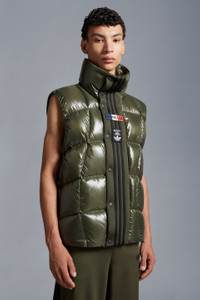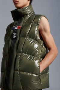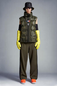 A statement warmer for men and women, the nylon laqué Bozon down vest is part of the Moncler x adidas Originals collection. A classic Moncler puffer vest is seen through the lens of adidas Originals in this warm layer. Made from iconic nylon laqué, it's finished with wavy quilting that reimagines marks created on snow-covered slopes while skiing. Signature three stripes and both brand logos sign off on the front flap. - Crafted from nylon laqué - Nylon laqué lining - Down-filled - Front flap with three adidas stripes - Zipper and snap button closure - Zipped outer pockets - Mesh inner pockets - Silicone logo patches - Hem with elastic drawstring fastening SIZE AND FIT - The male model is wearing a size 3 and is 185 cm tall - The female model is wearing a size 0 and is 178 cm tall - The male model measures:chest 68 cm, waist 89 cm, hips 44 cm - The female model measures:bust 76 cm, waist 76 cm, hips 88 cm - Oversized fit COMPOSITION AND CARE EXTERIOR: 100% Polyamide / Nylon; LINING: 100% Polyamide / Nylon; PADDING: 90% Down, 10% Feather; 1 MATERIAL: 100% Polyester Hand wash; Do not bleach; Do not tumble dry; Ironing maximum temperature 110°C - without steam; Do not dry clean; Do not professionally wet clean; Flat dry in the shade; Wash separately; Do not twist or wring; Do not iron decorations; Iron with a cloth between; do not soak; It is advisable to wash and iron the garment on reverse. Product code I209S1A00011M2267838 Made in Romania
