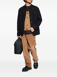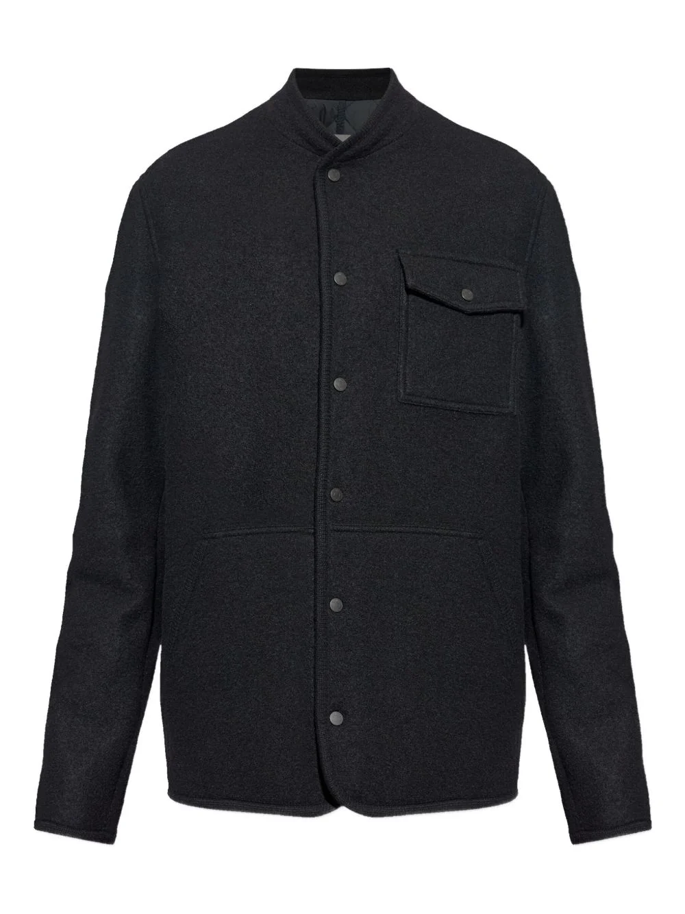 Buttoned pocket shirt jacket Highlights - Black - Wool - Snap button-fastening - Chest pocket - Round neck - Long sleeves - Leather logo patch Imported Composition Outer: Virgin Wool 100%, Calf Leather 100% Lining: Polyester 100% Washing instructions Read Manufacturer Guidelines