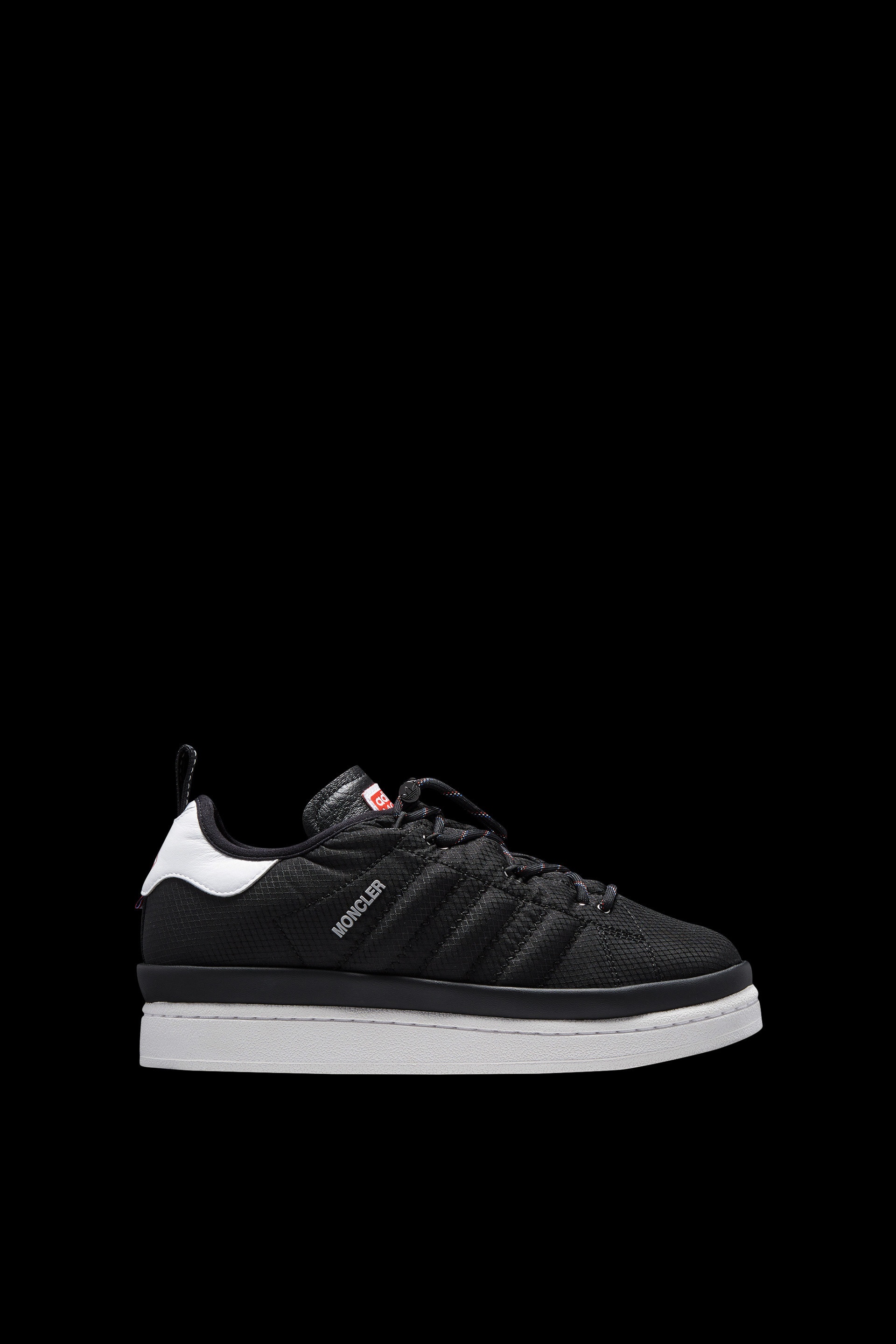 The sporty spirit is infused with innovation in the Moncler Campus sneakers for men and women - part of the Moncler x adidas Originals collection. An adidas Originals icon is given the Moncler treatment. The Campus shoes first made a name for themselves in the '80s, and this version riffs on the most classic elements. The upper is made from ripstop and leather, accented by the Moncler logo and signature three stripes. A lace-up drawstring closure hints at Moncler's mountaineering heritage, while an exaggerated sole adapts the shoe to any terrain. A co-branded dust bag and box mean they arrive at your door in style. - Ripstop and leather upper - Ripstop and fabric insole - Padded - Speed lace closure - EVA midsole - Rubber sole - Sole height: 5 cm SIZE AND FIT - Your Moncler x adidas Originals sneakers will differ from your usual Moncler size, please refer to the dedicated size guide. COMPOSITION AND CARE UPPER: 100% Polyester; LINING: 100% Polyester; SOLE: 100% Elastodiene;UPPER: COW To protect your purchase over time, we recommend the shoes be cleaned using a brush with soft natural bristles or a slightly damp soft cloth. Before cleaning, make sure that the shoes are completely dry. After brushing, apply an appropriate amount of cleaning product to the leather and create small circular motions with a soft dry cloth. For suede shoes, please use a special rubber brush. We also recommend the use of a suitable water-repellent product before wearing the shoes in wet conditions. Dry away from direct heat. Finish the cleaning using a dry clean cloth. Store in the felt bag provided at the time of purchase. Product code I209S4M00050M3019999 Made in China
