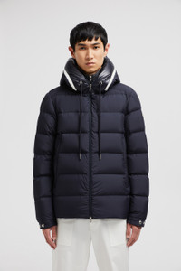 Featured in graphic colors, the Cardere short down jacket is a classic design for men. Emblematic of Moncler's dedication to using fabrics with a lower environmental impact, the Cardere down jacket is crafted from recycled polyester. The hooded puffer is featured in striking colors and embellished with a logo on the adjustable hood. DETAILS - Crafted from recycled polyester - Recycled polyester lining - Down-filled - Adjustable hood with logo lettering and zipper closure - Zipper closure - Zipped pockets - Adjustable cuffs SIZE AND FIT - The model is wearing a size 3 and is 187 cm tall - The model measures: chest 81 cm, waist 62 cm, hips 91 cm - Regular fit - Straight cut COMPOSITION EXTERIOR: 100% Polyester; LINING: 100% Polyester; PADDING: 90% Down, 10% Feather; 1 MATERIAL: 100% Polyester Product code J20911A0020754A81778 Made in Armenia