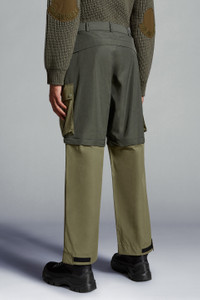 Transformability is key in the Moncler x Pharrell Williams collection - and these bottoms can be styled both as pants and shorts. Made for outdoor experiences and metropolitan adventures alike, these bottoms are emblematic of the Moncler Genius collection. Crafted from technical fabrics, the cargo pants are easily transformed into above-the-knee shorts. - Crafted from nylon technique (top) and cotton / nylon technique (bottom) - Detachable insert - Adjustable waistband with nylon ribbon belt - Slider, nylon zip and snap closure - Side zippers - Cargo pockets - Zipped back pockets - Logo carabiner - Hem with hook-and-loop closure - Logo ribbon SIZE AND FIT - The male model is wearing a size 48 and is 187 cm tall - The female model is wearing a size 40 and is 180 cm tall - The male model measures: chest 87 cm, waist 71 cm, hips 87 cm - The female model measures: bust 76 cm, waist 61 cm, hips 86 cm COMPOSITION AND CARE 1 MATERIAL: 55% Cotton, 45% Polyamide / Nylon; BASE FABRIC: 60% Polyester, 40% Cotton Wash max 30°C - Mild process; Do not bleach; Do not tumble dry; Ironing maximum temperature 110°C - without steam; Do not dry clean; Professional wet cleaning - mild process; Flat dry in the shade; Wash separately; do not soak; It is advisable to wash and iron the garment on reverse.; PROTECT TRIMS WHILE WASHING Product code I209R2A00001M3405P80 Made in Hungary