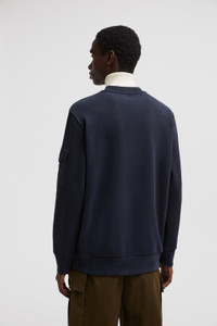 Channeling brand DNA, this cotton fleece sweatshirt for men is emblazoned with a textured logo print. Referencing the concept of utility, this sweatshirt is enhanced with cargo pockets on the sleeves. The casual crew neck is crafted from cotton fleece. DETAILS - Crafted from cotton fleece - Crew neck - Nylon sleeve pockets with snap button closure - Rubberized printed logo SIZE AND FIT - The model is wearing a size L and is 185 cm tall - The model measures: chest 85 cm, waist 71 cm, hips 84 cm - Loose fit COMPOSITION BASE FABRIC: 100% Cotton; Ribs: 95% Cotton, 5% Elastane / Spandex; 1 MATERIAL: 100% Polyamide / Nylon Product code J20918G0003589AHE778 Made in Turkey
