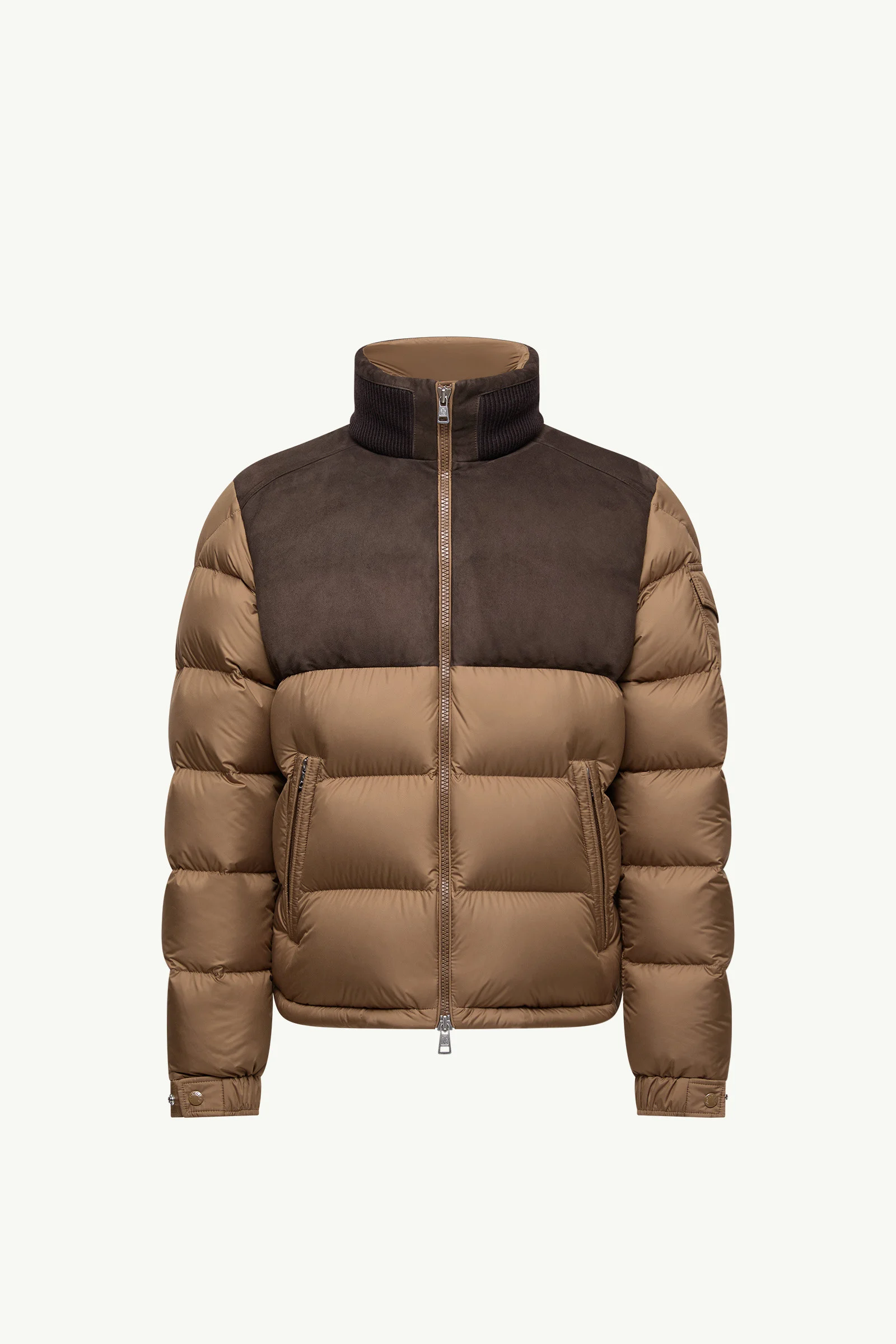 Adding a sophisticated note to the classic down jacket, the men's Cheverny is enhanced with supple suede accents. Playing with contrast, the Cheverny down jacket pairs the performance of technical fabrics with the softness of suede. The short puffer is crafted from Airsoft, a material that is designed to be supremely light while remaining soft to the touch. A subtle nod to the brand's history, a pocket on the sleeve inspired by the Moncler Maya completes the design. DETAILS - Crafted from Airsoft - Airsoft lining - Suede front, back yoke and collar trim - Rib knit wool collar - Down-filled - Zipper closure - Zipped pockets - Sleeve pocket with snap button closure - Adjustable cuffs - Hem with elastic drawstring fastening SIZE AND FIT - Regular fit - Straight cut COMPOSITION EXTERIOR: 100% Polyester; Collar rib: 100% Virgin wool; LINING: 100% Polyester; PADDING: 90% Down, 10% Feather;Leather with hair 1: LAMB; Origin: Tunisia; Dyed Product code K20911A00183597X2248 Made in Romania