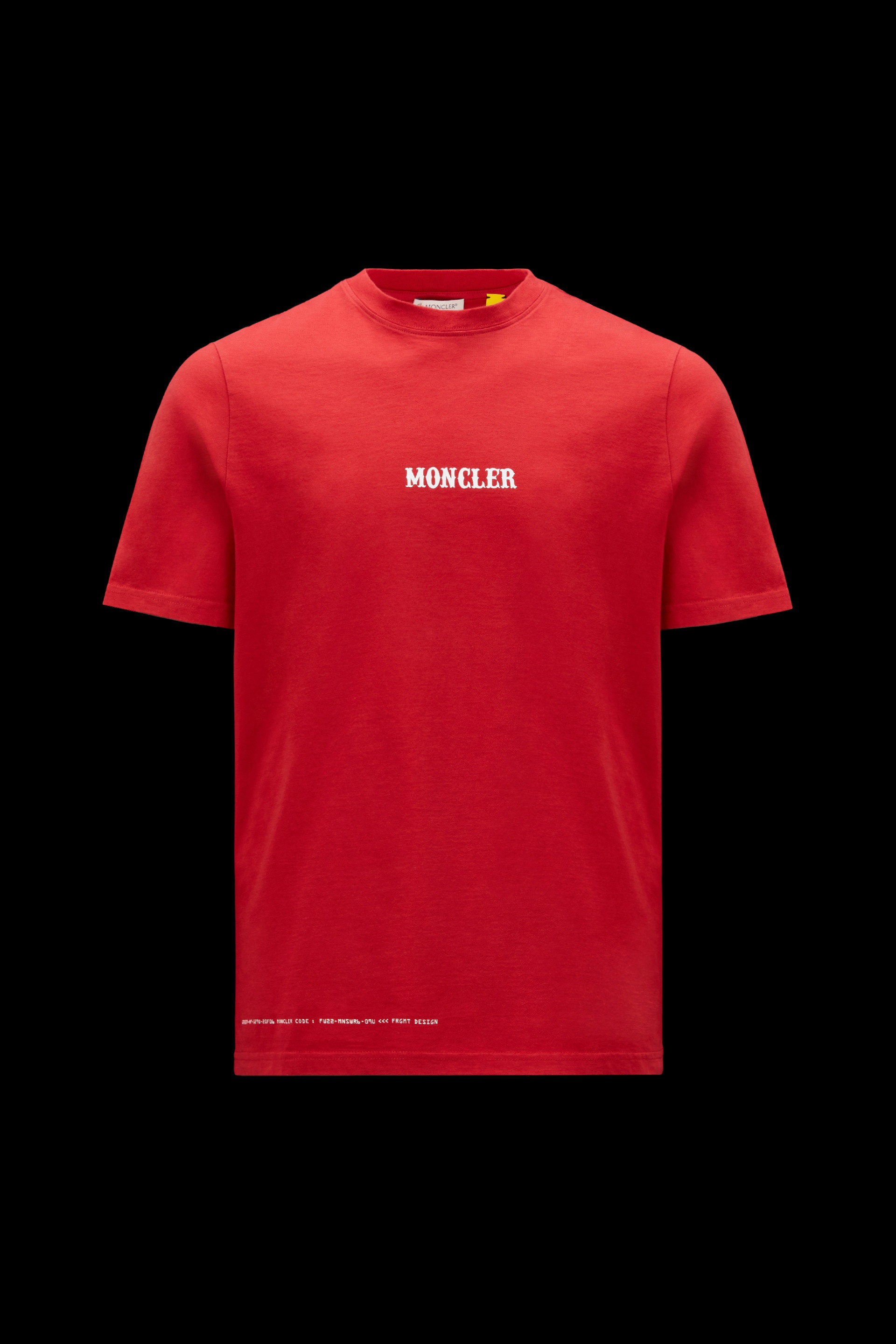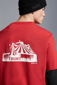 Part of the 7 Moncler FRGMT Hiroshi Fujiwara collection for men and women, this t-shirt is crafted from fabrics with a low environmental impact. Reflecting the dedication to lower the brand's environmental impact, this t-shirt is crafted from organic cotton. The classic crew neck is embellished with a printed motif on the back. The loose fit style is part of the 7 Moncler FRGMT Hiroshi Fujiwara collection. - Crafted from organic cotton jersey - Crew neck - Short sleeves - Printed logo lettering - Circus print on back SIZE AND FIT - The male model is wearing a size L and is 186 cm tall - The female model is wearing a size S and is 175 cm tall - The male model measures: chest 92 cm, waist 65 cm, hips 81 cm - The female model measures: bust 75 cm, waist 56 cm, hips 86 cm - Loose fit COMPOSITION AND CARE BASE FABRIC: 100% Cotton; Ribs: 100% Cotton Wash max 30°C - Mild process; Do not bleach; Do not tumble dry; Ironing maximum temperature 110°C - without steam; Do not dry clean; Professional wet cleaning - mild process; Flat dry in the shade; Wash separately; Wash inside out; Iron inside out Product code H209U8C00003M235345R Made in Portugal