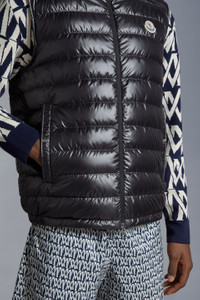 The Clai down vest from the men's collection is a contemporary take on a classic warmer. Beyond seasons and trends, the Clai down vest comes in a classic, slightly boxy shape. Crafted from recycled polyester, the puffer vest is embellished with logo lettering on the hood. The style layers perfectly over city and outdoor leisurewear. DETAILS - Crafted from recycled polyester - Recycled polyester lining - Down-filled - Adjustable hood - Zipper closure - Pockets with snap button closure - Zipped inner pockets - Logo lettering - Logo patch SIZE AND FIT - The model is wearing a size 3 and is 187 cm tall - The model measures: chest 84 cm, waist 72 cm, hips 86 cm - Regular fit - Fitted shoulders and chest - Boxy waistline COMPOSITION EXTERIOR: 100% Polyester; LINING: 100% Polyester; PADDING: 90% Down, 10% Feather; 1 MATERIAL: 100% Polyester Product code J10911A00057595ZJ999 Made in Moldova