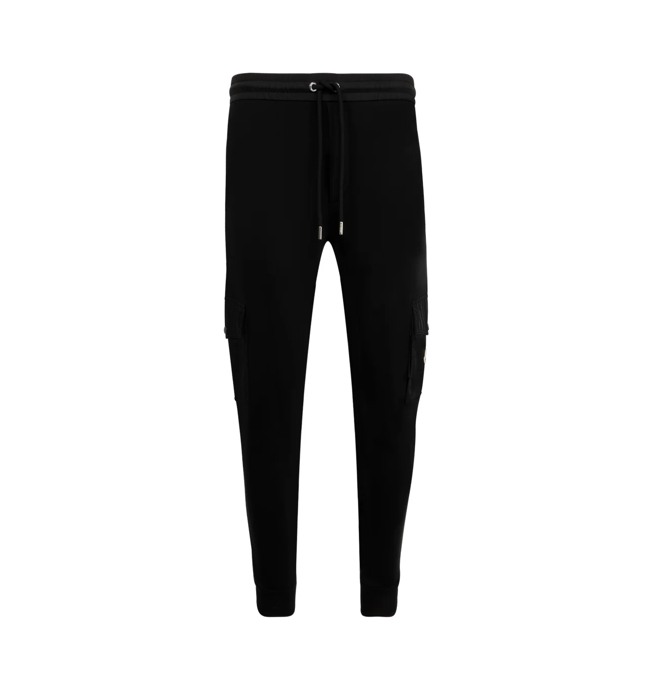 MONCLER Cotton Blend Sweatpants featuring cotton blend fleece, nylon waistband with drawstring fastening, nylon cargo pockets with zipper and snap button closure and rib knit cuffs. 87% cotton, 13% polyamide/nylon. Made in Turkey. DESIGNER STYLE ID: 8H000-23-89A8F COLOR: 999 BLACK