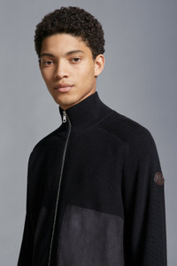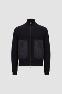 Elegant lines are paired with luxurious fabrics in this cardigan from the men's collection. An ultra-lightweight knit, this cardigan is crafted from a cashmere and cotton blend. The plush knit is enriched with suede pockets. - Crafted from a cashmere & cotton blend - Brioche stitch - Gauge 14 - Zipper closure - Suede pockets - Synthetic material logo patch SIZE AND FIT - The model is wearing a size L and is 188 cm tall - The model measures: chest 85 cm, waist 71 cm, hips 87 cm - Regular fit COMPOSITION AND CARE BASE FABRIC: 85% Cotton, 15% Cashmere;1 LEATHER MATERIAL: GOAT Do not wash; Do not bleach; Do not tumble dry; Ironing maximum temperature 110°C - without steam; Dry cleaning with hydrocarbons - mild process; Do not professionally wet clean; Flat dry in the shade; Wash separately; It is advisable to wash and iron with the garment on reverse.; Wash in professional laundry for leather Product code J10919B00019M1611778 Made in Tunisia