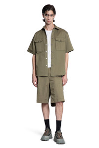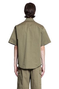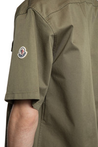 DESCRIPTION - Olive green - Cotton gabrdine - Classic collar - Press stud closure - Press stud flap chest pockets - Dropped shoulders - Short sleeves - Sleeve felt logo patch - Relaxed fit DETAILS - Made in: Romania - Composition: 98% Cotton 2% Elastane - Model code: 2F00008598QH 81M - Item ID: 9670851494230