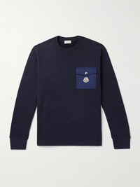 Moncler's sweatshirt has zip fastenings along either side, so you can customise the fit and breathability factor. It's made from cotton-jersey and has a twill snap-fastening flap pocket detailed with the signature logo applique. Size & Fit - Model wears a size larger to achieve a looser fit - Dropped shoulder seam - Mid-weight, slightly stretchy fabric - Model is shown wearing a M - Model measures: chest 36"/ 92cm, height 6'2"/ 188cm Details & Care - Navy cotton-jersey, blue twill - 100% cotton; trim: 100% cotton - Machine wash