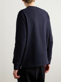 Zip-Detailed Logo-Appliquéd Twill-Trimmed Cotton-Jersey Sweatshirt Navy