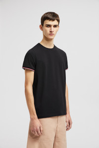 A classic crew neck design, this men’s t-shirt will complete your collection with a distinct, graphic flair. Quintessentially Moncler, this t-shirt is a base layer easily styled with a range of separates. The style is crafted in cotton jersey and has a classic crew neck and short sleeves boasting details inspired by the French flag. DETAILS - Crafted from stretch cotton jersey - Crew neck - Short sleeves - Tricolor trim SIZE AND FIT - The model is wearing a size L and is 187 cm tall - The model measures: chest 85 cm, waist 75 cm, hips 85 cm - Slim fit COMPOSITION BASE FABRIC: 92% Cotton, 8% Elastane / Spandex; Cuffs rib: 99% Cotton, 1% Elastane / Spandex Product code K10918C7160087296999 Made in Turkey