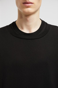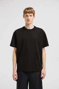 Adding an unexpected twist to a timeless design, this t-shirt for men features a double neckline. An easy layer for any time of year, this short sleeve t-shirt is made from soft cotton jersey. The piece revisits the classic crew neck silhouette with a double neckline. An elevated essential, the design pairs effortlessly with casual cargo pants or add a relaxed note to sartorial bottoms. DETAILS - Crafted from cotton jersey - Double crew neck - Short sleeves - Embossed silicone logo patch SIZE AND FIT - The model is wearing a size L and is 188 cm tall - The model measures: chest 88 cm, waist 71 cm, hips 84 cm - •Oversized fit COMPOSITION BASE FABRIC: 100% Cotton; Ribs: 100% Cotton Product code K10918C0000389A17999 Made in Turkey