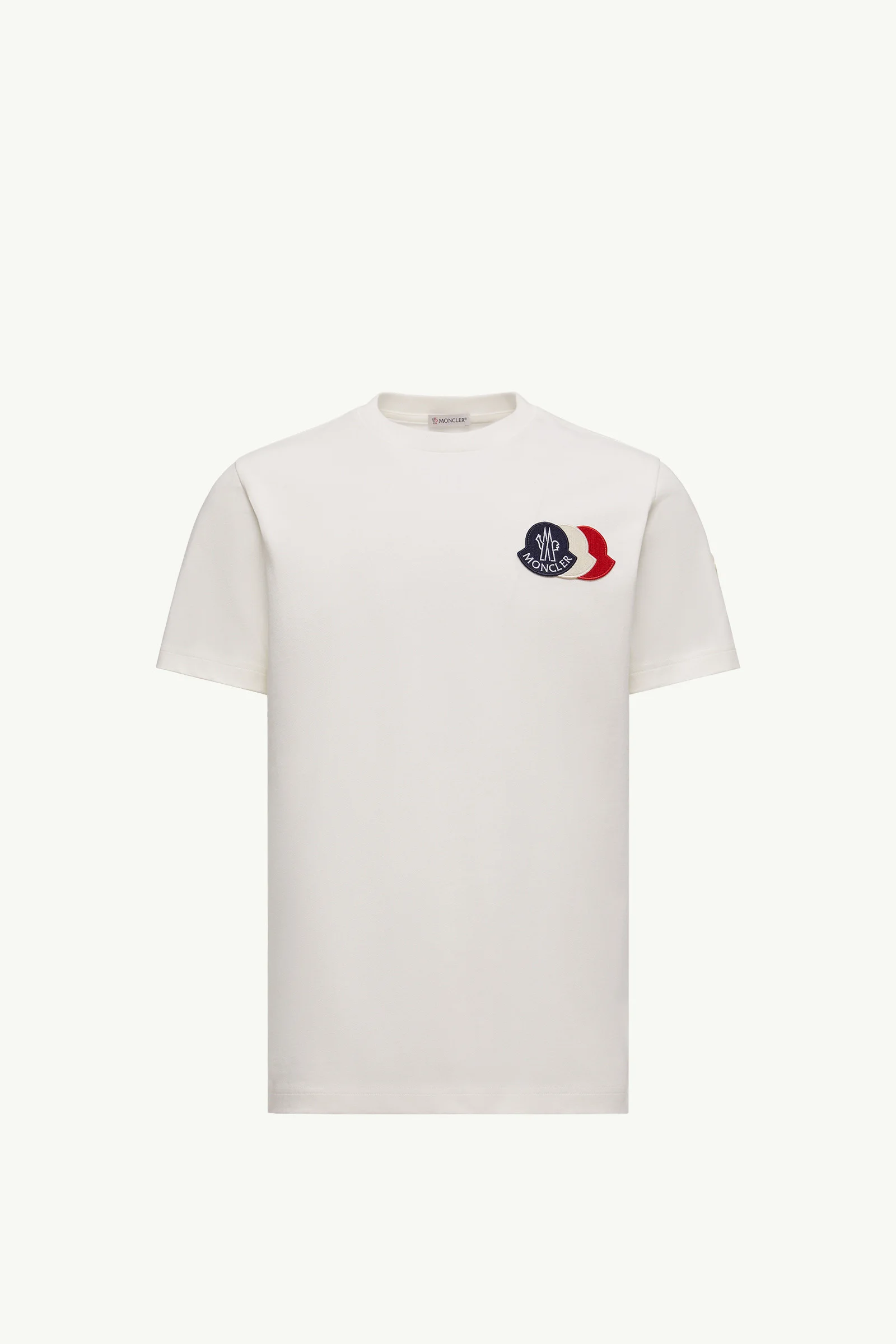 Designed for everyday wear, this men’s t-shirt features subtle accents that pay homage to the brand's DNA. A contemporary take on Moncler's logo, this short sleeve t-shirt recreates the signature tricolor through embroidered patches. The classic crew neck is crafted from organic cotton jersey. DETAILS - Crafted from organic cotton jersey - Crew neck - Short sleeves - Embroidered logo patches SIZE AND FIT - The model is wearing a size L and is 191 cm tall - Regular fit COMPOSITION BASE FABRIC: 100% Cotton; Ribs: 100% Cotton Product code K20918C0005689AUG034 Made in Turkey