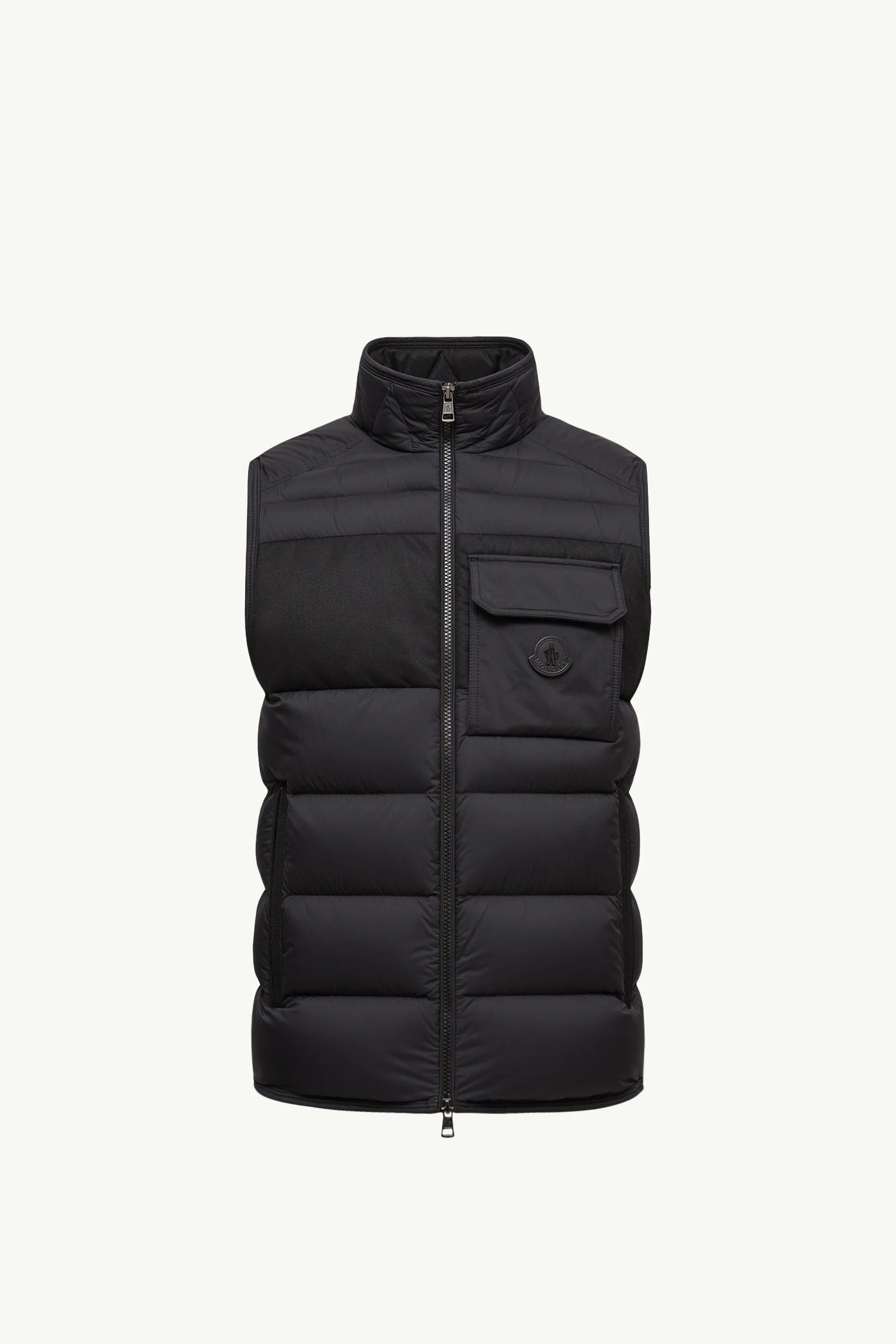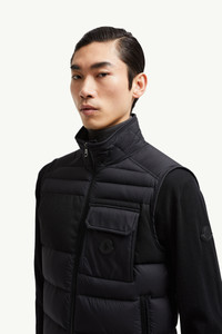 Exemplary of sophisticated menswear cut from performance-oriented fabrics, the Estagnous down vest is made to protect. Fusing a refined aesthetic with technical performance, the Estagnous down vest is crafted from longue saison, a light and water-repellent nylon fabric. Adding an elegant element to the short puffer, a cashmere blend trim complements the style. The warmer layers equally well over workwear and weekend casuals. DETAILS - Crafted from longue saison - Longue saison lining - Smart cashmere trim - Down-filled - Zipper closure - Zipped pockets - Chest pocket with zipper and snap button closure - Inner patch pocket with snap button closure - Fabric description label - Leather logo patch SIZE AND FIT - Regular fit - Fitted shoulders and chest - Boxy waistline - Length (collar to hem): 70 cm COMPOSITION EXTERIOR: 100% Polyamide / Nylon; LINING: 100% Polyamide / Nylon; PADDING: 90% Down, 10% Feather; 1 MATERIAL: 100% Virgin wool;LEATHER TAG: COW Product code K20911A00251596K7999 Made in Romania