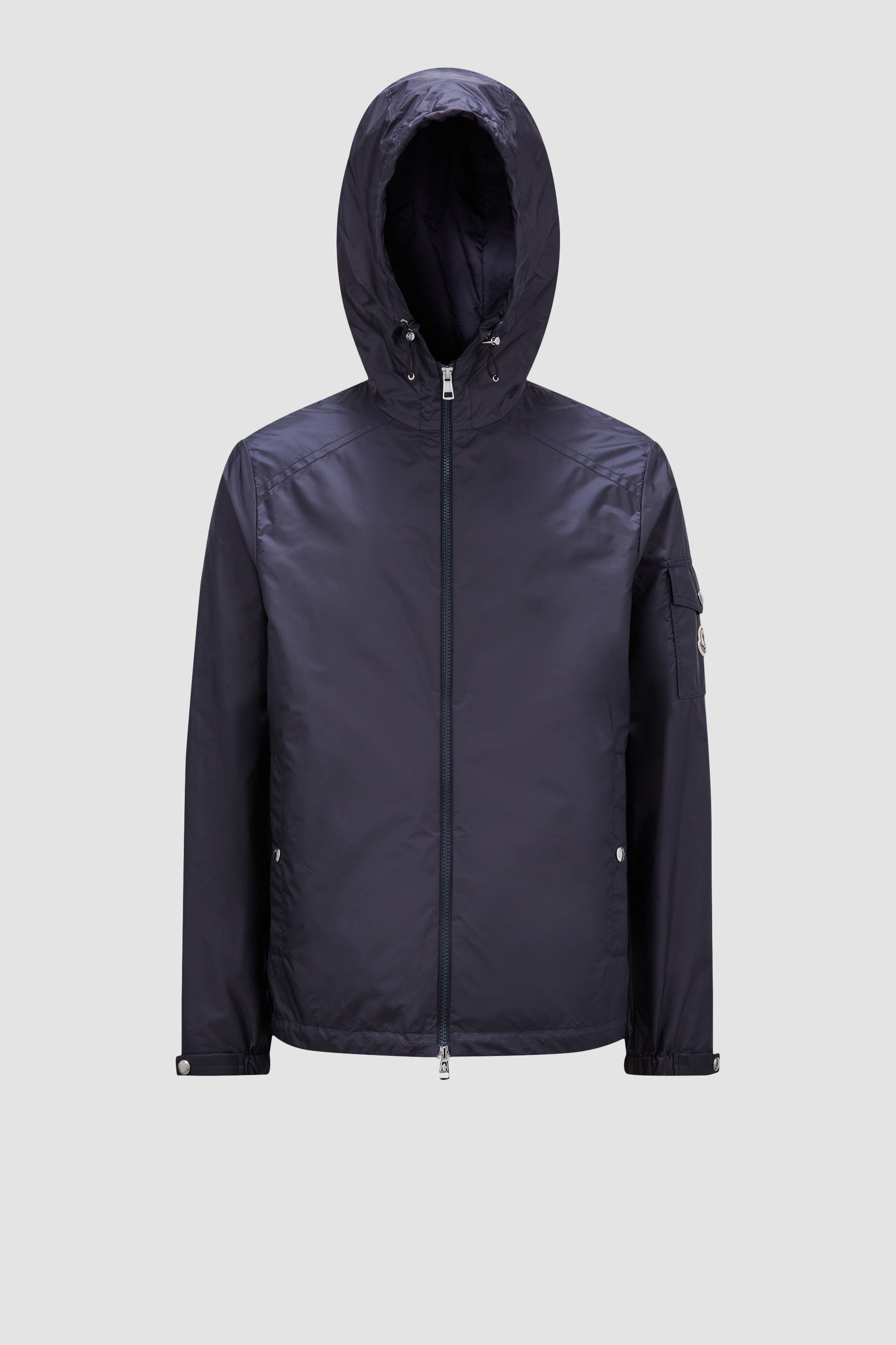 Profoundly practical, the Etiache rain jacket for men is crafted from water-repellent nylon. Designed to provide protection, the Etiache jacket is crafted from rainwear, a compact nylon fabric, notable for its water-repellent properties. Inspired by the iconic Moncler Maya, the hooded jacket is finished with a signature patch pocket on the sleeve. DETAILS - Crafted from rainwear - Rainwear lining - Hood - Zipper closure - Pockets with snap button closure - Sleeve pocket - Adjustable cuffs, hood and hem SIZE AND FIT - The model is wearing a size 3 and is 187 cm tall - The model measures: chest 92 cm, waist 75 cm, hips 93 cm - Regular fit - Fitted shoulders and chest - Boxy waistline COMPOSITION EXTERIOR: 100% Polyamide / Nylon; HOOD LINING: 100% Polyamide / Nylon Product code J10911A001015968E742 Made in Moldova