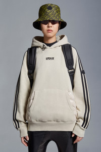 This cotton fleece hoodie for men and women boast an interplay between matte and sheen – emblematic of the Moncler x adidas Originals collection. An adidas Originals classic is seen through the Moncler lens in this comfortable hoodie. Made from soft cotton fleece, it's finished with glossy nylon accents. Iconic three stripes run along each arm. - Crafted from cotton fleece - Hood with drawstring fastening - Kangaroo pocket - Three adidas stripes along the sleeves - Logo on the chest - Logo patch on the sleeve SIZE AND FIT - The male model is wearing a size L and is 185 cm tall - The female model is wearing a size S and is 178 cm tall - The male model measures:chest 68 cm, waist 89 cm, hips 44 cm - The female model measures:bust 76 cm, waist 76 cm, hips 88 cm - Oversized fit COMPOSITION AND CARE HOOD LINING: 100% Cotton; HOOD: 100% Cotton; PADDING: 90% Down, 10% Feather; 1 MATERIAL: 100% Polyamide / Nylon; BASE FABRIC: 100% Cotton; Ribs: 100% Cotton Wash max 30°C - Very mild process; Do not bleach; Do not tumble dry; Ironing maximum temperature 110°C - without steam; Do not dry clean; Professional wet cleaning - very mild process; Flat dry in the shade; Wash separately; Wash inside out; Iron inside out; PROTECT TRIMS WHILE WASHING Product code I209S8G00004M2292265 Made in Italy