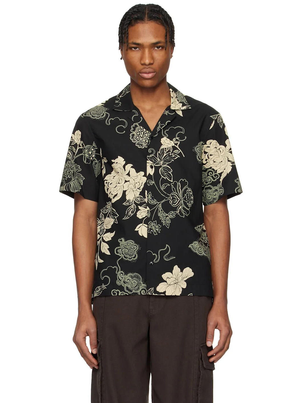 Lightweight cotton poplin shirt. Floral pattern printed throughout. - Open spread collar - Press-stud closure - Felted logo patch at sleeve - Twin pleats at back yoke - Logo-engraved black hardware Supplier color: Black
