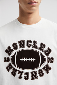 This men's crew neck t-shirt interprets the collection's football influences with a textured patch. Inspired by the world of football, this t-shirt pairs a sports-inspired patch with a flocked logo print. The crew neck is crafted from soft cotton jersey with short sleeves. DETAILS - Crafted from cotton jersey - Crew neck - Short sleeves - Flocked printed motif - Synthetic material patch SIZE AND FIT - The model is wearing a size L and is 190 cm tall - The model measures: chest 92 cm, waist 77 cm, hips 95 cm - Loose fit COMPOSITION BASE FABRIC: 100% Cotton; Ribs: 100% Cotton Product code J20918C0001289AKK032 Made in Turkey