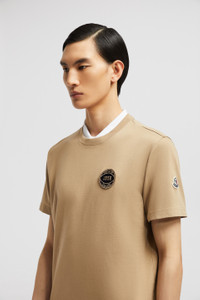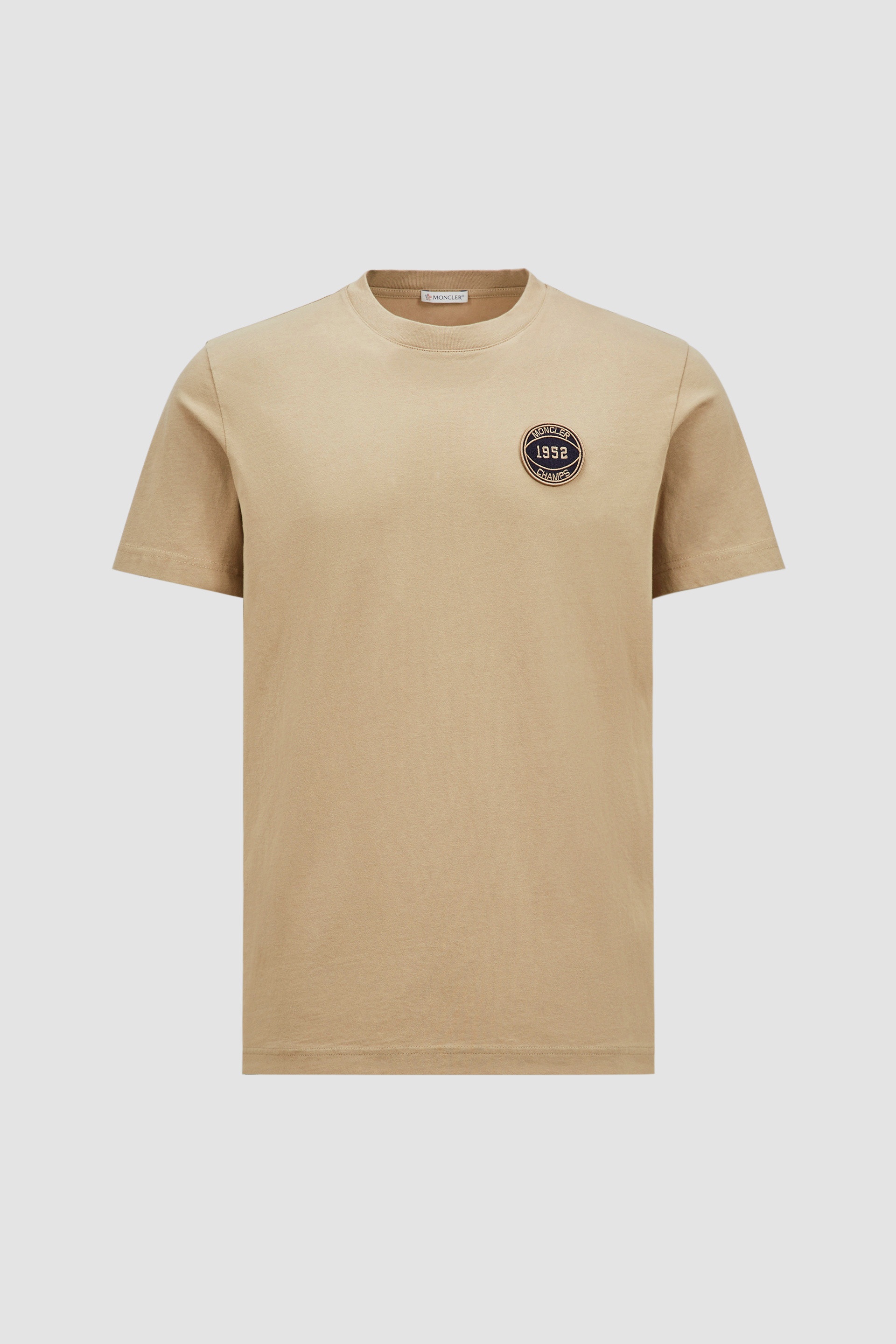 An essential piece no matter the season, this men's t-shirt takes inspiration from the world of sports. Echoing the spirit of victorious teams, this t-shirt features a football patch alongside the words Moncler Champs. The crew neck has short sleeves and is perfect for casual, layered looks. DETAILS - Crafted from cotton jersey - Crew neck - Short sleeves - Football patch SIZE AND FIT - The model is wearing a size L and is 189 cm tall - The model measures: chest 90 cm, waist 71 cm, hips 94 cm - Regular fit COMPOSITION BASE FABRIC: 100% Cotton; Ribs: 100% Cotton Product code J20918C0002889AKK22A Made in Turkey