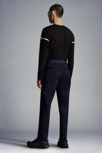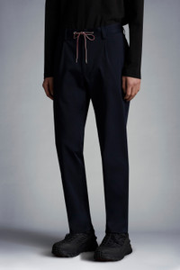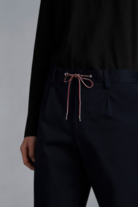 The elegant lines of these men's pants are updated with tricolor elements that nod to Moncler’s heritage. Crafted from gabardine, these pants are refreshed with tricolor tie-string, referencing the colors of the French flag. - Crafted from gabardine - Button and zipper closure - Side pockets COMPOSITION AND CARE EXTERIOR: 98% Cotton, 2% Elastane / Spandex; 1 MATERIAL: 100% Polyamide / Nylon Wash max 30°C - Very mild process; Do not bleach; Do not tumble dry; Ironing maximum temperature 110°C - without steam; Do not dry clean; Professional wet cleaning - mild process; Flat dry in the shade; Wash separately; It is advisable to wash and iron the garment on reverse. Product code I20912A0001854A1U742 Made in Italy