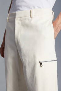 A staple in a sophisticated man's wardrobe, these pants are crafted from light gabardine. A mid-season design, these relaxed pants are crafted from light gabardine. Featuring a classic shape, the pants transition seamlessly from workwear to weekend leisure. - Crafted from light gabardine - Hook and zipper closure - Embossed logo SIZE AND FIT - The model is wearing a size 48 and is 187 cm tall - The model measures: chest 83 cm, waist 72 cm, hips 88 cm COMPOSITION AND CARE BASE FABRIC: 98% Cotton, 2% Elastane / Spandex Wash max 30°C - Mild process; Do not bleach; Do not tumble dry; Ironing maximum temperature 110°C - without steam; Do not dry clean; Professional wet cleaning - mild process; Flat dry in the shade; Wash separately; Wash inside out; Iron inside out Product code H20912A00031596EJ001 Made in Italy