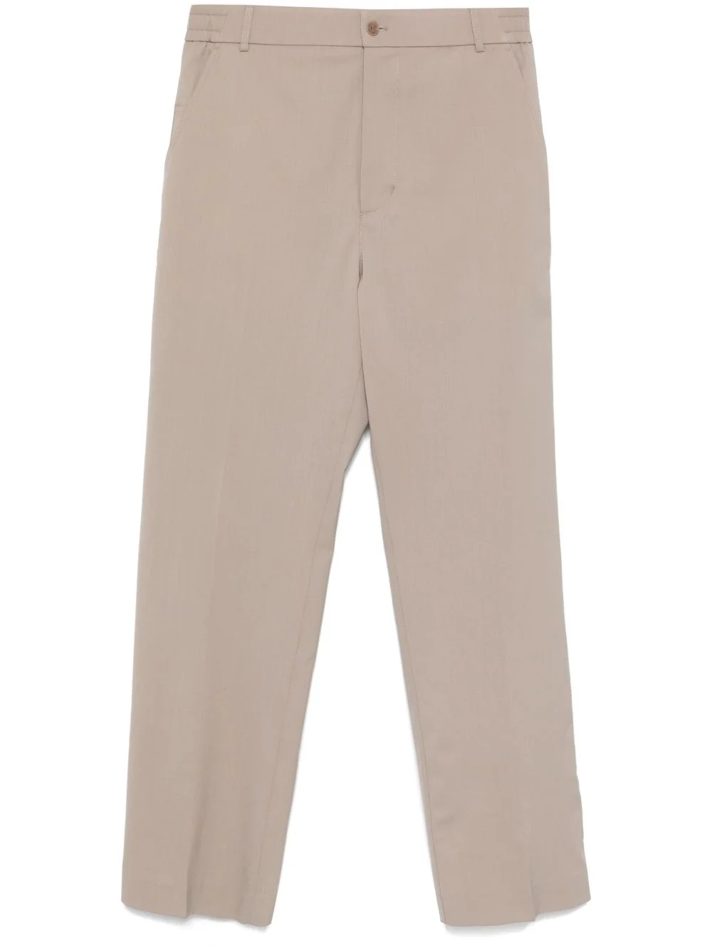 gabardine tailored trousers Highlights - Light brown - Concealed fly and button fastening - Elasticated waistband with internal drawstring - Two side slash pockets - Two rear flap pockets Imported Composition Virgin Wool 54%, Polyester 45%, Elastane 1% SIZE & FIT Model measurements Height 6 ft 1 in(1.85 m) Bust/Chest 35.82 in(91 cm) Hips 37.79 in(96 cm) Waist 29.13 in(74 cm) FittingInformation Designed for a straight-leg, allowing for an unrestricted and comfortable fit over the leg Adjust this piece’s waistband to your preference using the drawstring Made from a midweight stretch fabric, this piece offers elasticity and flexibility when worn