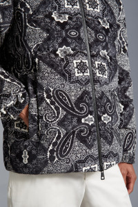 Crafted from plush velvet, the hooded Gartempe short down jacket is an investment piece in a bold man's wardrobe. A statement design for men, the Gartempe down jacket is crafted from velvet. The bandana-printed fabric is engineered to be weather-resistant and water-repellent, while a detachable hood adds another layer of protection. - Crafted from velvet - Recycled polyester lining - Down-filled - Detachable hood - Zipper and snap button closure - Zipped pockets - Cuffs with snap button closure - Hem with elastic drawstring fastening SIZE AND FIT - The model is wearing a size 3 and is 190 cm tall - The model measures: chest 92 cm, waist 78 cm, hips 96 cm - Regular fit - Straight cut COMPOSITION AND CARE EXTERIOR: 100% Cotton; LINING: 100% Polyester; PADDING: 90% Down, 10% Feather Do not wash; Do not bleach; Do not tumble dry; Ironing maximum temperature 110°C - without steam; Dry cleaning in tetrachloroethene or with hydrocarbons - mild process; Do not professionally wet clean; Flat dry in the shade; Wash separately; Do not twist or wring; do not soak; It is advisable to wash and iron the garment on reverse. Product code I20911A00022596X4S90 Made in Romania