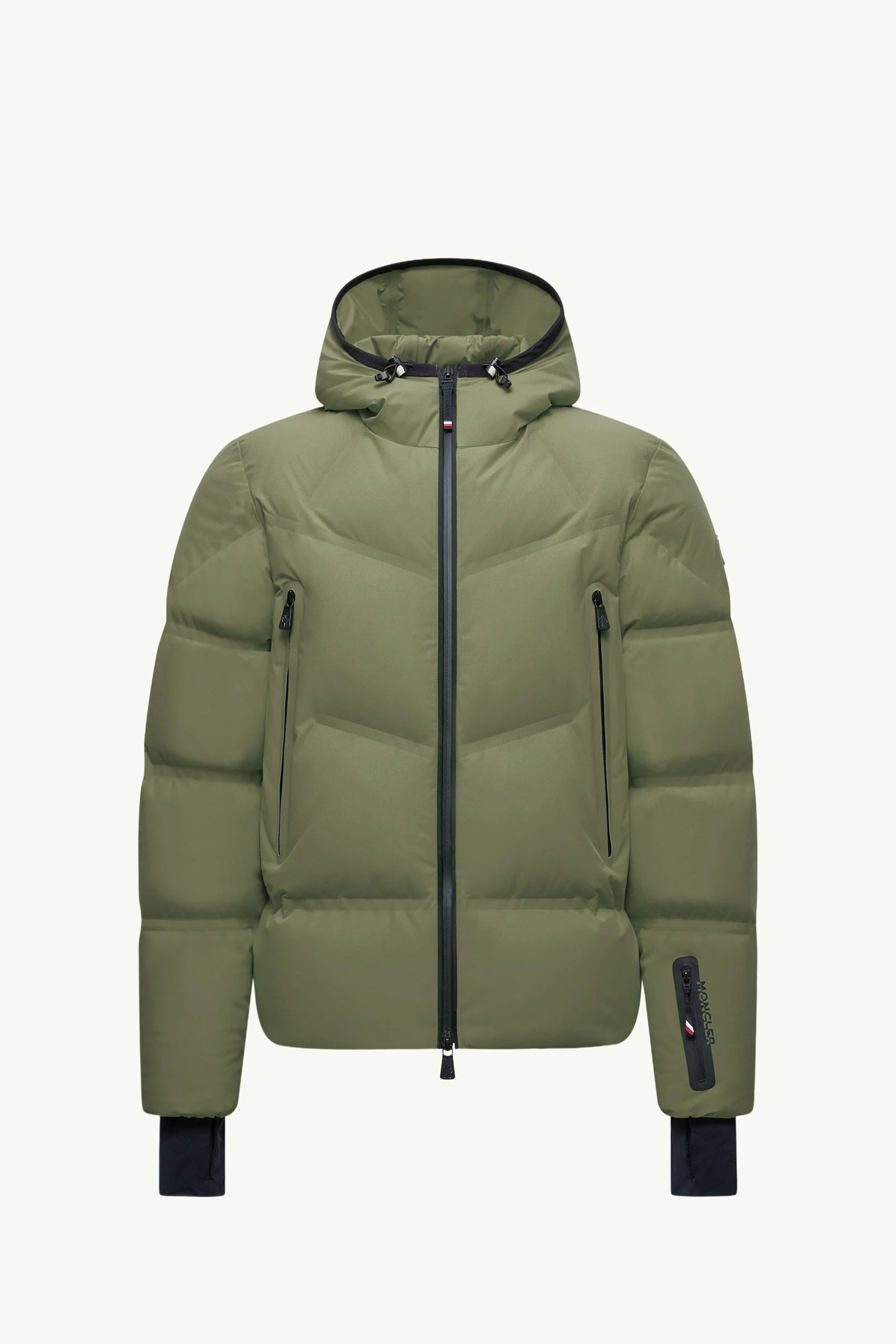 Performance-oriented features meet technical fabrics in the Moncler Grenoble Angren short down jacket for men. Designed for skiing and snowboarding, the Angren down jacket for men showcases bold, contemporary lines. Supporting movement, the short puffer is crafted in poplin that stretches four ways. The performance jacket features water-resistant zippers and stretch jersey wrist gaiters for protection against the elements. An integrated RECCO® reflector completes the design. DETAILS - Designed for skiing and snowboarding - Crafted from 2L 4-way stretch tech poplin - 4-way stretch tech poplin lining - Down-filled - Heat-sealed seams - Adjustable hood with drawstring fastening - Bonded boudin - Logo details - YKK® AquaGuard® highly water-resistant zipper closure - Outer pockets with YKK® AquaGuard® highly water-resistant zipper closure - Inner media pocket - Powder skirt - RECCO® reflector - Stretch jersey wrist gaiters - Ski pass pocket with YKK® AquaGuard® highly water-resistant zipper closure - Hem with elastic drawstring fastening - Embossed silicone logo SIZE AND FIT - The model is wearing a size 3 and is 188 cm tall - Regular fit - Straight cut - Length (collar to hem): 70 cm COMPOSITION BASE FABRIC: 84% Polyamide / Nylon, 16% Elastane / Spandex; LINING: 84% Polyamide / Nylon, 16% Elastane / Spandex; PADDING: 90% Down, 10% Feather; 1 MATERIAL: 83% Polyamide / Nylon, 17% Elastane / Spandex Product code K20971A00018597S323I Made in Romania