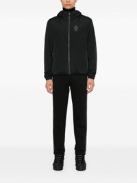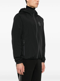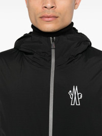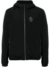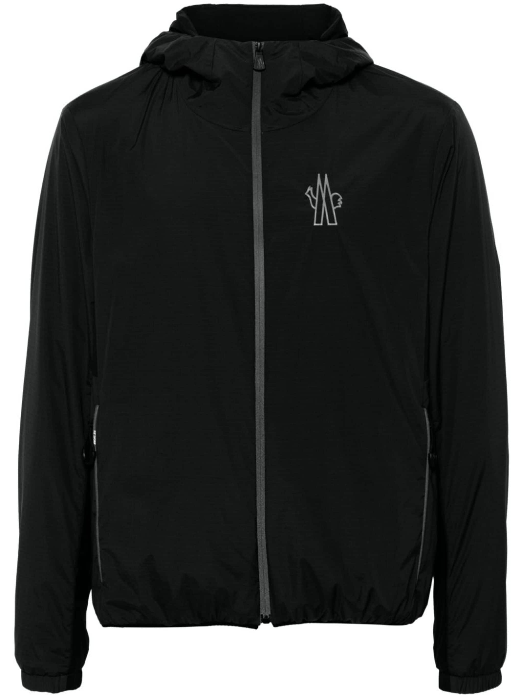 black ripstop texture water-repellent windproof classic hood long sleeves elasticated cuffs rubberised logo detail two side zip-fastening pockets mesh lining straight hem front zip fastening Size & Fit Model Measurements: Height: 1.89 m Bust/Chest: 95.0 cm Hips: 95.0 cm Waist: 75.0 cm Model wears size 2 Fabric and Care Designer Style ID: J20971G00008596H5 Designer Colour: 999 BLACK Composition: Outer: Elastane 15%, Polyamide 85%; Lining: Polyester 100% Washing instructions: Machine Wash Made in Romania