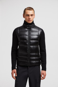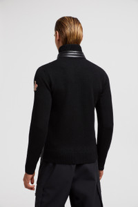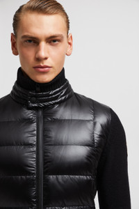 Designed with winter leisure in mind, this this padded Moncler Grenoble zip-up cardigan for men features a warm down-filled front and collar. Encapsulating the essence of relaxing in the mountains, this cardigan is crafted from stretch wool. The mid-weight knit is enhanced by a down-filled front and collar in micro ripstop, a fabric notable for being highly resistant and delivering lightweight warmth. DETAILS - Crafted from stretch wool - Nylon lining - Down-filled front and collar in micro ripstop - Gauge 5 - Double collar with snap button closure - Water-repellent look zipper closure - Zipped pockets SIZE AND FIT - The model is wearing a size L and is 189 cm tall - The model measures: chest 93 cm, waist 74 cm, hips 91 cm - Regular fit COMPOSITION OUTER FRONT: 100% Polyamide / Nylon; BASE FABRIC: 95% Wool, 5% Polyester; FRONT LINING: 100% Polyester; COLLAR: 100% Polyamide / Nylon; PADDING: 90% Down, 10% Feather Product code J20979B00011M1122999 Made in Turkey