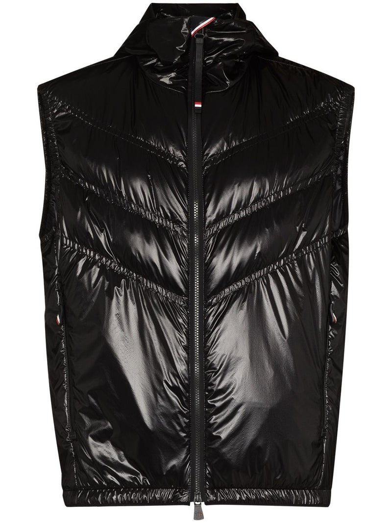 MONCLER GRENOBLE chevron-quilted padded gilet Moncler Grenoble's padded gilet is designed to protect against chilly winds when cold days hit. This black chevron-quilted iteration is filled with insulating down feathers. Highlights - black - chevron quilting - classic hood - front two-way zip fastening - down-feather filling Composition Outer: Polyamide 100% Washing instructions Machine Wash Designer Style ID: G20971A0000653A7B Wearing The model is 1.85 m wearing size 3 (NUM)