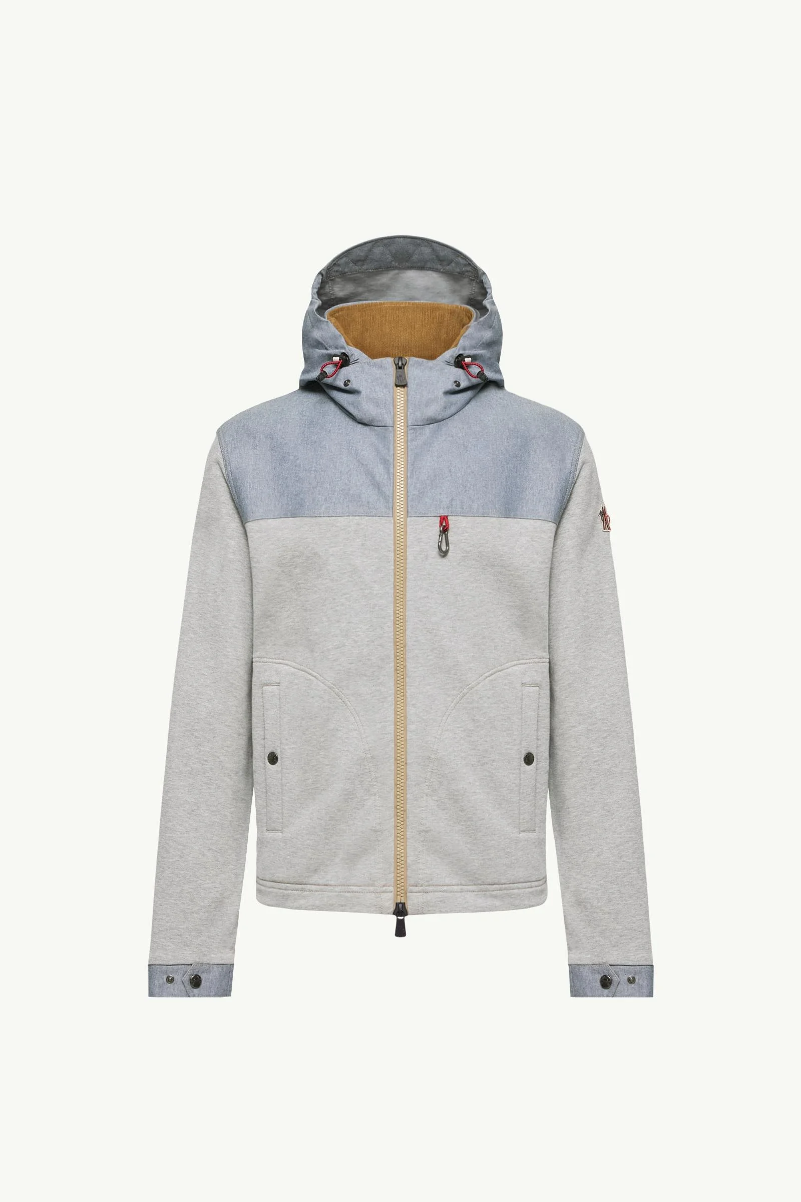 A unique fusion of performance and style, this men's Moncler Grenoble sweatshirt is enhanced by accents in a technical take on chambray. Pushing the limits of technical apparel, Moncler Grenoble gives city fabrics a mountain-ready transformation in this sweatshirt. The cotton fleece design is enhanced by details in chambray, made technical through it's three layer construction. A pull-out hood and multi-functional carabineer complete the warmer. DETAILS - Crafted from cotton fleece - Front and back yoke, neck and cuffs in 3L chambray - Pull-out hood - Pockets with snap button closure - Multi-functional carabiner - Zipper closure - Adjustable cuffs - Logo and reflective details SIZE AND FIT - The model is wearing a size L and is 187 cm tall - Loose fit COMPOSITION BASE FABRIC: 100% Cotton; 1 MATERIAL: 81% Cotton, 19% Polyester; HOOD: 81% Cotton, 19% Polyester; COLLAR LINING: 99% Cotton, 1% Elastane / Spandex; DETAILS PADDING: 100% Polyester Product code L10978G000048098U986 Made in Turkey
