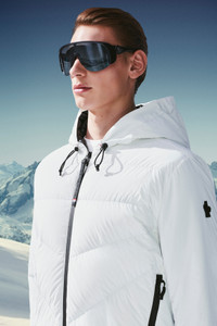 Short down jacket from the Grenoble Day-namic collection. The puffer is crafted from nylon with a photoluminescent membrane that glows in the dark. Part of the Grenoble Day-namic collection, the Porossan short down jacket is inspired by running and outdoor activities. Encompassing style and performance, the puffer is crafted from nylon with a photoluminescent membrane that ensures the safety of visibility in the dark. Insulated sleeves provide an additional layer of warmth. - Crafted from nylon with photoluminescent membrane that glows in the dark after being exposed to sunlight or artificial warm light - Down-filled front - Sleeves and back padded with Primaloft® Gold Insulation Active - Fixed hood with length-adjustable stretch drawstring - Front closure with YKK® Aquaguard® Highly Water Resistant double-slider zipper - Pockets with YKK® Aquaguard® Highly Water Resistant zipper closure on left sleeve - Ski pass pocket with YKK® Aquaguard® Highly Water Resistant zipper closure on left sleeve - Elastic cuffs and hem - Snap-off branded suspenders in technical ribbon - Graphic prints on right sleeve edge, hood and hem - Embossed Moncler logo in black nylon laqué on left sleeve - Regular fit SIZE AND FIT - The model is wearing a size 3 and is 189 tall - Regular fit COMPOSITION AND CARE LINING: 100% Polyester; HOOD LINING: 100% Polyester; PADDING: 90% Down, 10% Feather; DETAILS PADDING: 100% Polyester; BASE FABRIC: 100% Polyamide / Nylon Wash max 30°C - Mild process; Do not bleach; Do not tumble dry; Do not iron; Do not dry clean; Professional wet cleaning - mild process; Flat dry in the shade; Wash separately; do not soak; Remove detachable accessories before washing; It is advisable to wash with the garment on reverse. Product code G209Q1A0000154AQS04G Made in Romania