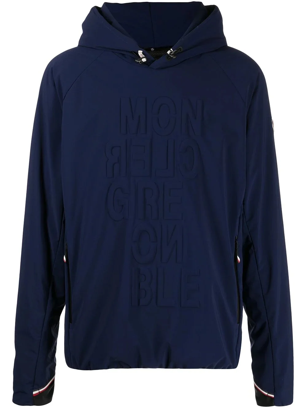 embossed logo hoodie blue stretch-design embossed logo to the front drawstring hood long sleeves elasticated cuffs elasticated hem Imported Composition Polyamide 80%, Elastane 20% SIZE & FIT Model measurements Height 6 ft 0 in(1.83 m) Bust/Chest 37.79 in(96 cm) Hips 37 in(94 cm) Waist 30.31 in(77 cm) FittingInformation This piece fits true to size. We recommend you get your regular size Cut for a relaxed fit Made with a mid-weight non-stretch fabric Washing instructions Machine Wash