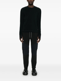 black fleece texture drawstring fastening elasticated waistband piped-trim detailing two side zip-fastening pockets applique logo two side flap pockets rubberised logo detail elasticated ankles tapered leg - Color: BLACK - Made in: Turkey - Designer Style ID: 89AK8 8H000-03 999 Composition and care Outer Composition Polyester: 100.0%, Lining Composition Polyester: 100.0%