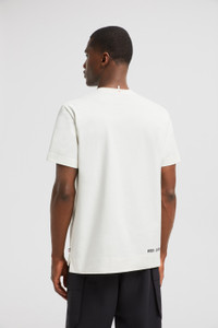 A men's Moncler Grenoble design, this short sleeve t-shirt captures the collection's adventurous spirit with a logo print. An essential layer for the city or the mountain, this short sleeve t-shirt is crafted from soft cotton. Drawing from the brand's heritage, the crew neck is embellished with a printed logo that features the coordinates of the city of Grenoble. DETAILS - Crafted from cotton stretch jersey - Crew neck - Short sleeves - Embossed and printed logo motif SIZE AND FIT - The model is wearing a size L and is 188 cm tall - The model measures: chest 95 cm, waist 75 cm, hips 93 cm - Slim fit COMPOSITION BASE FABRIC: 95% Cotton, 5% Elastane / Spandex; Ribs: 95% Cotton, 5% Elastane / Spandex Product code K10978C0000189AW1041 Made in Turkey