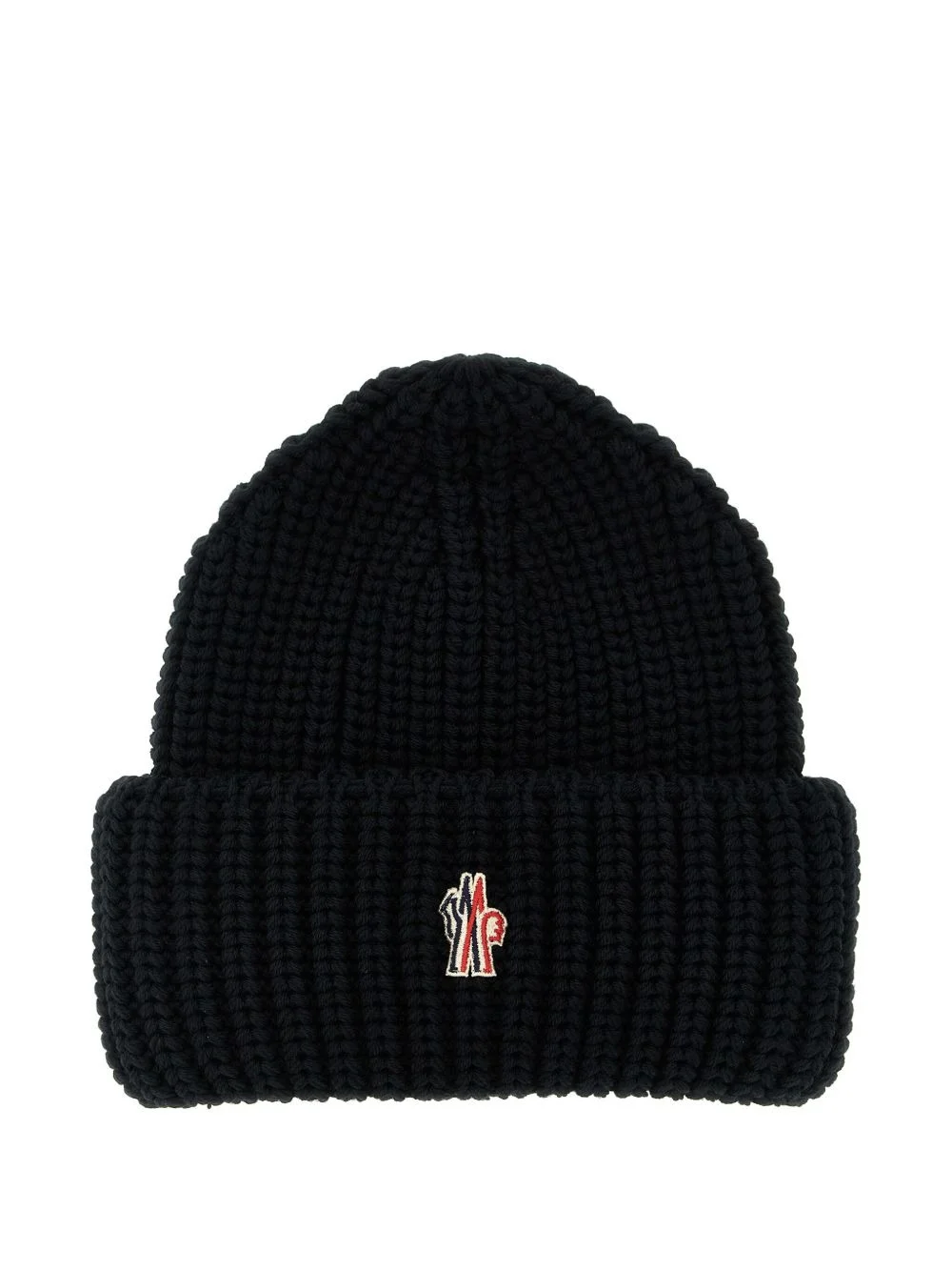 logo-patch ribbed beanie Highlights - Black - Ribbed knit - Turn-up brim - Logo patch Made in Italy Composition Virgin Wool 100%