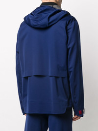 NAVY LOGO PRINT ZIP-UP JACKET FROM MONCLER GRENOBLE FEATURING HIGH NECK, FRONT ZIP FASTENING, FRONT ZIP FASTENING POCKETS, LONG SLEEVES, LOGO PRINT AT THE CHEST, SLEEVE ZIP POCKET AND LOGO-PRINT LINING.