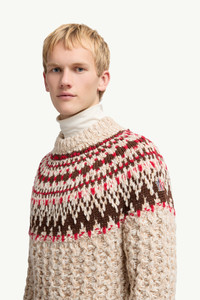 Recalling classic alpine knits, this sweater from the men's Moncler Grenoble collection is knit from a wool blend. Reminiscent of traditional mountain leisurewear, this wool blend sweater features a graphic pattern. A heavy knit, the crew neck adds a luxurious touch to moments of winter leisure. DETAILS - Crafted from a wool blend - Jacquard knit - 1.5 gauge - Crew neck SIZE AND FIT - The model is wearing a size L and is 189 cm tall - Regular fit COMPOSITION BASE FABRIC: 68% Virgin wool, 25% Polyamide / Nylon, 6% Silk, 1% Elastane / Spandex; YOKE: 74% Wool, 13% Polyamide / Nylon, 9% Alpaca, 3% Silk, 1% Elastane / Spandex; 1 MATERIAL: 73% Wool, 13% Polyamide / Nylon, 10% Alpaca, 3% Silk, 1% Elastane / Spandex Product code K20979C00003M7948F02 Made in Italy