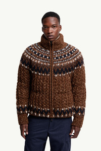 Encompassing a relaxed apres ski mood, the Indren short down jacket from the men's Moncler Grenoble collection is knit from a wool blend. Crafted from a textured wool blend, the Indren down jacket adds texture to a winter wardrobe in the softest way possible. The puffer is a heavy knit, making it the ideal companion for the coldest months. Adding an elevated note, a bright geometric pattern completes the style. DETAILS - Crafted from a wool blend Nylon laque lining Down-filled nylon laque front Jacquard knit Gauge 1.5 Zipper closure Side pockets SIZE AND FIT - The model is wearing a size L and is 189 cm tall - Regular fit COMPOSITION BASE FABRIC: 68% Virgin wool, 25% Polyamide / Nylon, 6% Silk, 1% Elastane / Spandex; LINING: 100% Polyamide / Nylon; YOKE: 74% Wool, 13% Polyamide / Nylon, 9% Alpaca, 3% Silk, 1% Elastane / Spandex; PADDING: 90% Down, 10% Feather; 1 MATERIAL: 73% Wool, 13% Polyamide / Nylon, 10% Alpaca, 3% Silk, 1% Elastane / Spandex Product code K20979B00012M7948F22 Made in Turkey