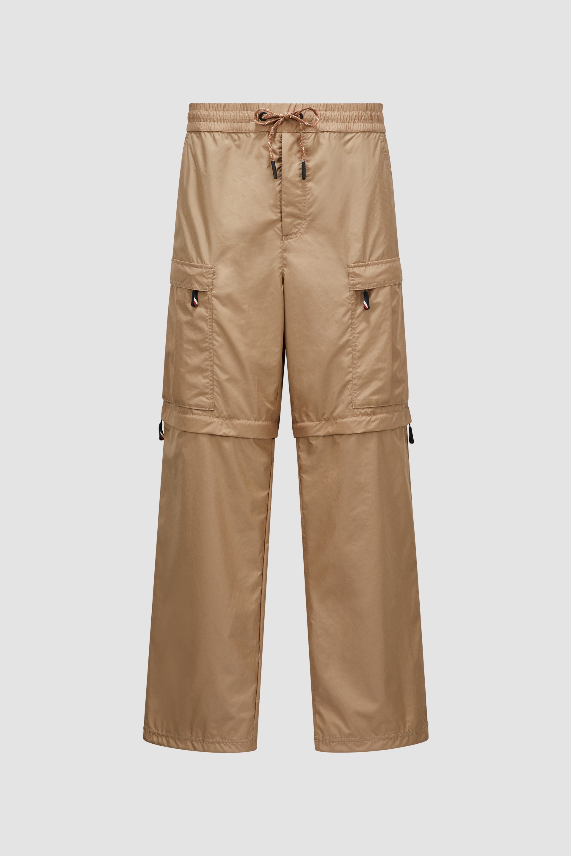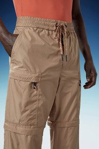 A transformable design, these Moncler Grenoble pants for men are easily adjusted to become shorts. Engineered for both the performance-inclined and aesthetically minded, these pants are crafted from rugged ripstop. The cargo style has detachable legs, easily becoming shorts and adapting to the changing temperature. - Designed for outdoor activities - Crafted from ripstop - Waistband with drawstring fastening - Zipper closure - Coin pocket - Elastic mesh pockets - Cargo pockets - Detachable legs - Hem with elastic drawstring fastening SIZE AND FIT - The model is wearing a size M and is 187 cm tall - The model measures: chest 85 cm, waist 70 cm, hips 89 cm COMPOSITION AND CARE BASE FABRIC: 100% Polyester; LINING: 100% Polyamide / Nylon Wash max 30°C - Mild process; Do not bleach; Do not tumble dry; Ironing maximum temperature 110°C - without steam; Do not dry clean; Professional wet cleaning - mild process; Flat dry in the shade; Wash separately; do not soak; It is advisable to wash and iron the garment on reverse. Product code J10972A0000454A3E226 Made in Romania