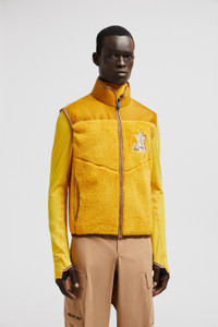 Made to accompany men on outdoor activities, this Moncler Grenoble fleece down vest provides warmth, breathability and fast-drying comfort. This down vest is crafted Polartec® High Loft stretch velvet - a breathable fabric that drys quickly while allowing you to move and stay dry. Adding protection, the puffer vest features inserts in warm fleece and water-repellent nylon rainwear. A mountain-inspired patch completes the design. DETAILS - Crafted from Polartec® High Loft™ stretch velvet and PrimaLoft® Performance Fabric - Rainwear yoke and collar - Down-filled - Zipper closure - Zipped pockets - Embroidered terry cloth logo patch SIZE AND FIT - The model is wearing a size L and is 186 cm tall - The model measures: chest 88 cm, waist 72 cm, hips 89 cm - Regular fit COMPOSITION BASE FABRIC: 97% Polyester, 3% Elastane / Spandex; 1 MATERIAL: 100% Polyamide / Nylon; PADDING: 90% Down, 10% Feather Product code J20978G00012899ML13Q Made in Bulgaria