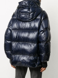 MONCLER GRENOBLE Oversized puffer coat Highlights navy padded design quilted - classic hood concealed front zip fastening long sleeves - oversized fit Composition Lining: Feather Down 100%, Polyamide 100%, Polyester 100% Outer: Polyamide 100% Washing instructions Hand Wash Designer Style ID: F20971B51000539YL Wearing Model is 1.85 m wearing size L