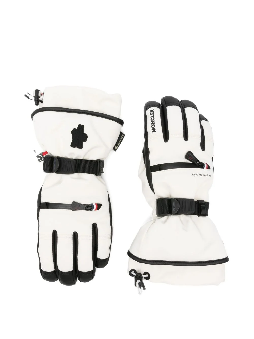 panelled ski gloves Highlights - White - Logo patch - Buckle fastening - Heating pocket - Drawstring fastening - Piped trim Imported Composition Outer: Polyester 87%, Elastane 13% Lining: Polyamide 100%