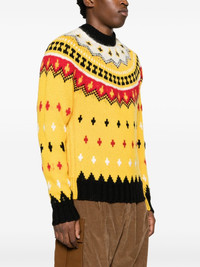 patterned-jacquard crew-neck jumper Highlights - Yellow/multicolour - Virgin wool blend - Patterned jacquard - Ribbed trim - Crew neck - Long sleeves - Straight hem Imported Composition Virgin Wool 90%, Polyester 10% SIZE & FIT Model measurements Height 6 ft 1 in(1.86 m) Bust/Chest 38.2 in(97 cm) Hips 38.2 in(97 cm) Waist 30.7 in(78 cm) FittingInformation Designed for a relaxed fit, this piece allows for comfort and movement when worn Made with a midweight knit, this piece offers some stretch This piece fits true to size – take your usual size