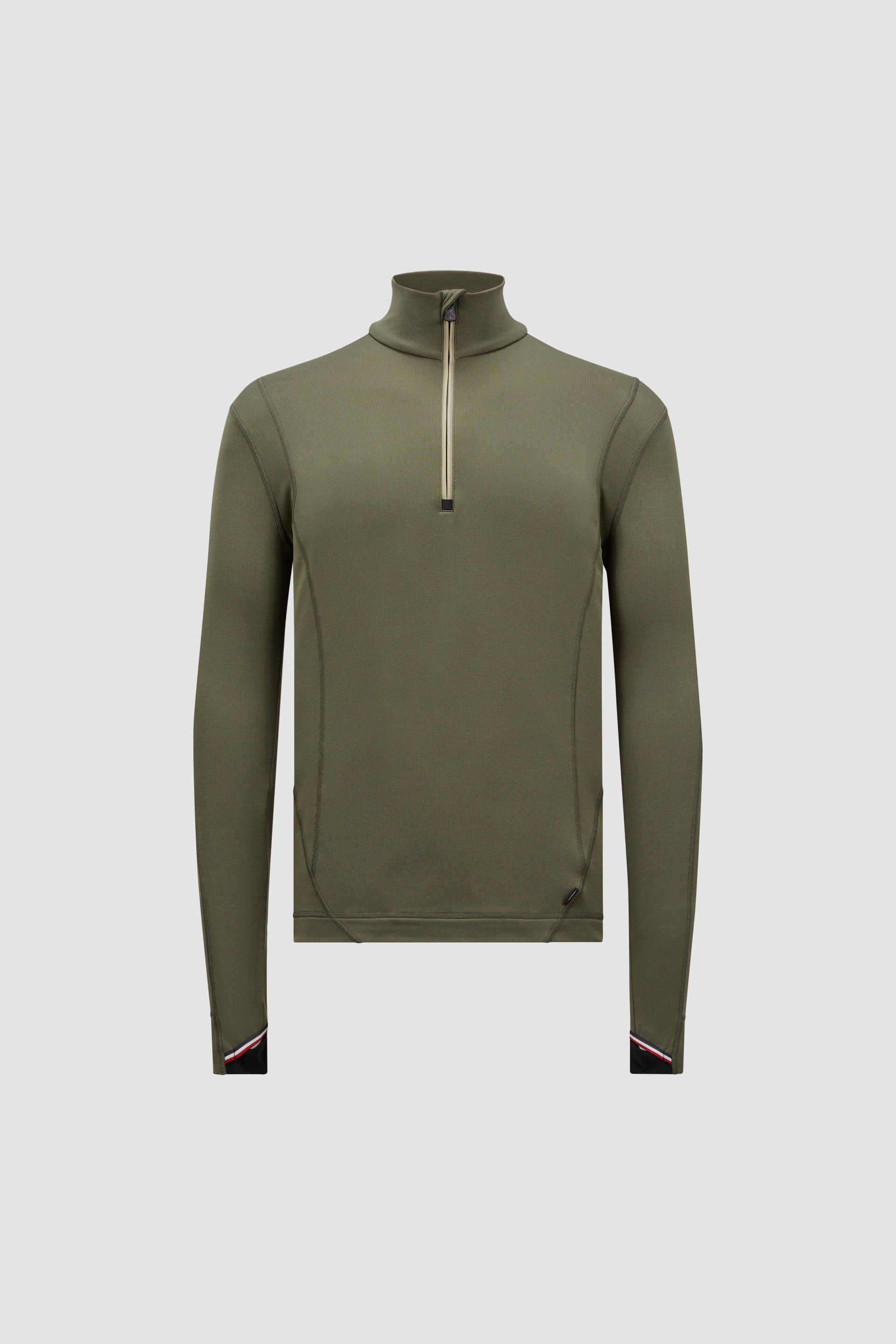 A mid-layer that adds warmth on the slopes, this half-zip sweatshirt is part of the Moncler Grenoble collection for men. A protective layer for skiing, this half-zip sweatshirt is crafted from Polartec® Power Grid. The lightweight fabric enhances the turtleneck with added performance by providing warmth, breathability and moisture-wicking properties. A versatile mid-layer, the design is perfect for wearing under ski jackets and puffers. DETAILS - Designed for skiing - Crafted from Polartec® Power Grid Rec Base Layer - Turtleneck - Zipper closure with tricolor trim SIZE AND FIT - The model is wearing a size L and is 187 cm tall - The model measures: chest 95 cm, waist 72 cm, hips 96 cm - Slim fit COMPOSITION BASE FABRIC: 88% Polyester, 12% Elastane / Spandex; 1 MATERIAL: 75% Polyamide / Nylon, 25% Elastane / Spandex Product code J20978G00028899JO891 Made in Portugal