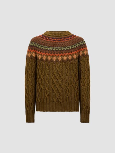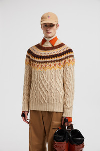 From spending time in the mountains to bracing the cold in the city, this Moncler Grenoble sweater for men is knit from a plush wool and alpaca blend. Inspired by the brand's mountain heritage, this cable knit sweater recalls classic alpine leisurewear with a geometric pattern. The heavy knit is crafted from a plush wool and alpaca blend. DETAILS - Crafted from a carded wool and alpaca blend - Diamond and cable pattern jacquard knit - Gauge 1.5 - Crew neck - Embroidered logo SIZE AND FIT - The model is wearing a size L and is 188 cm tall - The model measures: chest 95 cm, waist 77 cm, hips 96 cm - Regular fit COMPOSITION BASE FABRIC: 100% Virgin wool; YOKE: 73% Wool, 21% Alpaca, 6% Polyamide / Nylon Product code J20979C00004M4503F02 Made in Italy