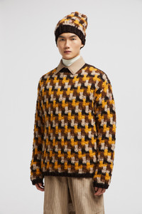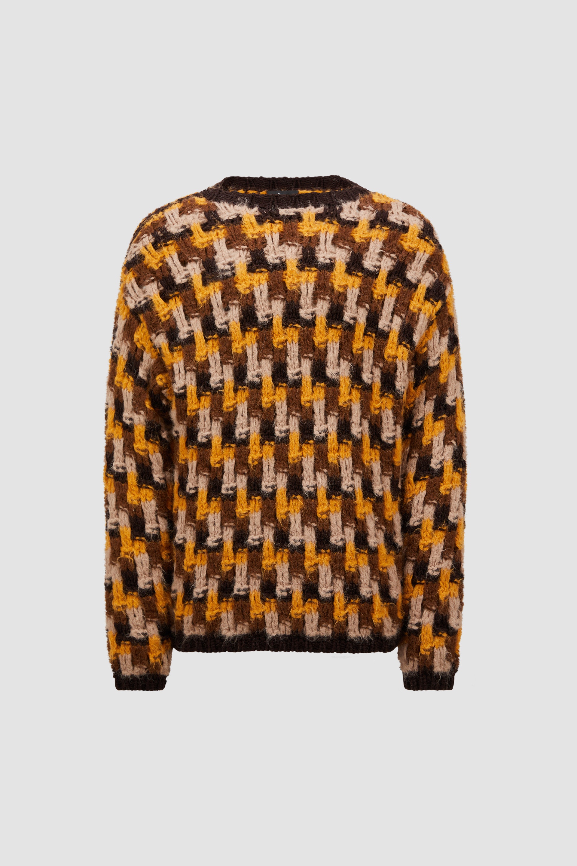 Recalling classic alpine leisurewear, this sweater from the men's Moncler Grenoble collection is knit from a wool and alpaca blend. Reminiscent of mountain leisurewear from the '60s, this wool and alpaca sweater features a graphic pattern. A heavy knit, the crew neck adds a luxurious touch to moments of winter leisure. DETAILS - Crafted from a wool and alpaca blend - Gauge 1.5 - Crew neck SIZE AND FIT - The model is wearing a size L and is 188 cm tall - The model measures: chest 94 cm, waist 75 cm, hips 91 cm - Regular fit COMPOSITION BASE FABRIC: 49% Alpaca, 41% Wool, 10% Polyamide / Nylon Product code J20979C00001M4404P12 Made in Bulgaria