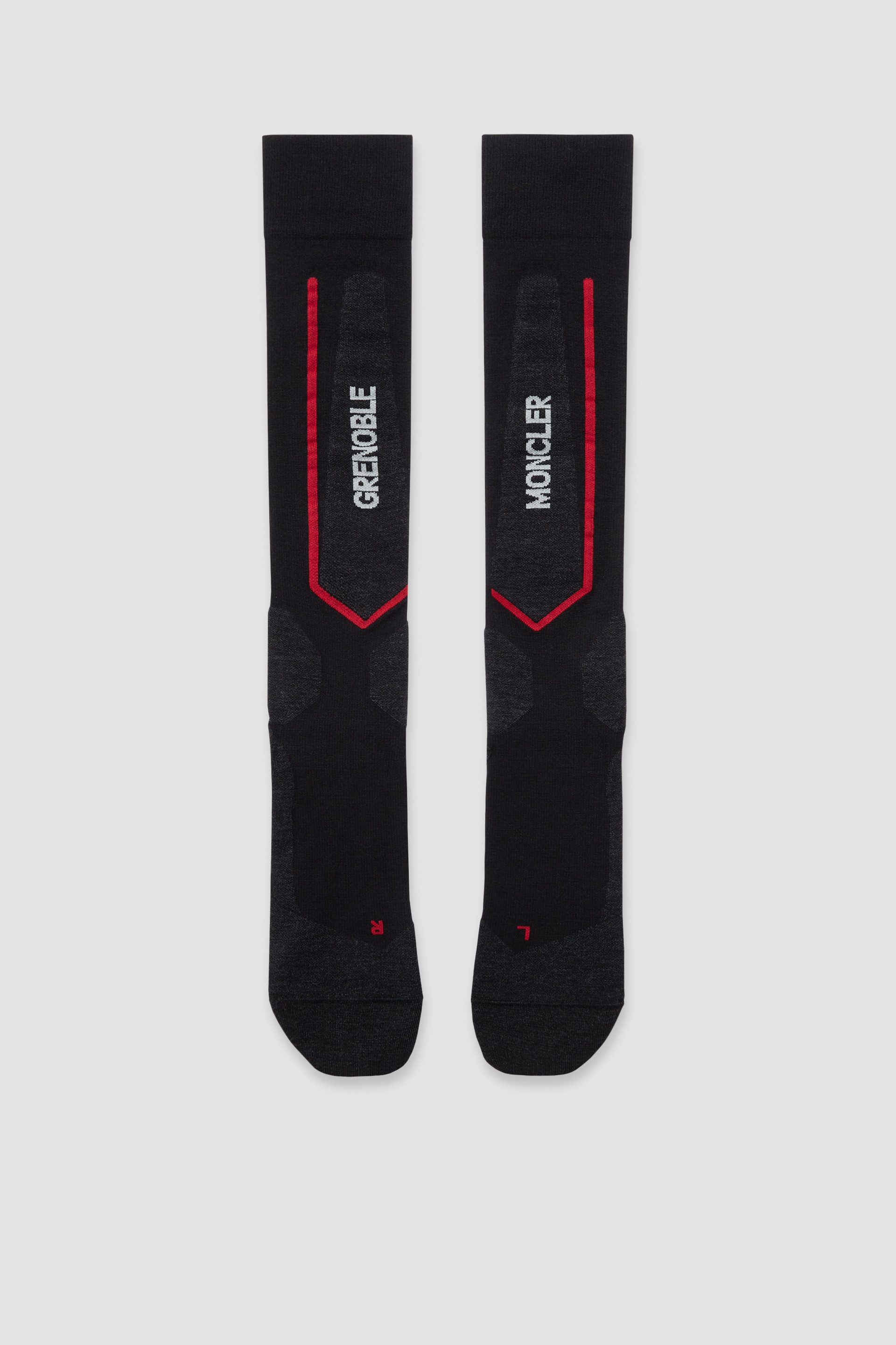 An added layer of protection on the slopes, this pair of Moncler Grenoble socks for men is crafted from a technical wool blend. Made for mountain sports, these wool and nylon socks blend the comfort of knitwear with the protection of technical materials. The accessory is completed by an elastic trim, ensuring a comfortable fit while carrying out physical activities. DETAILS - Crafted from a responsibly sourced wool and nylon blend - Elastic band - Jacquard logo details COMPOSITION BASE FABRIC: 55% Wool, 42% Polyamide / Nylon, 3% Elastane / Spandex Product code J20973G00008M5092P95 Made in Germany